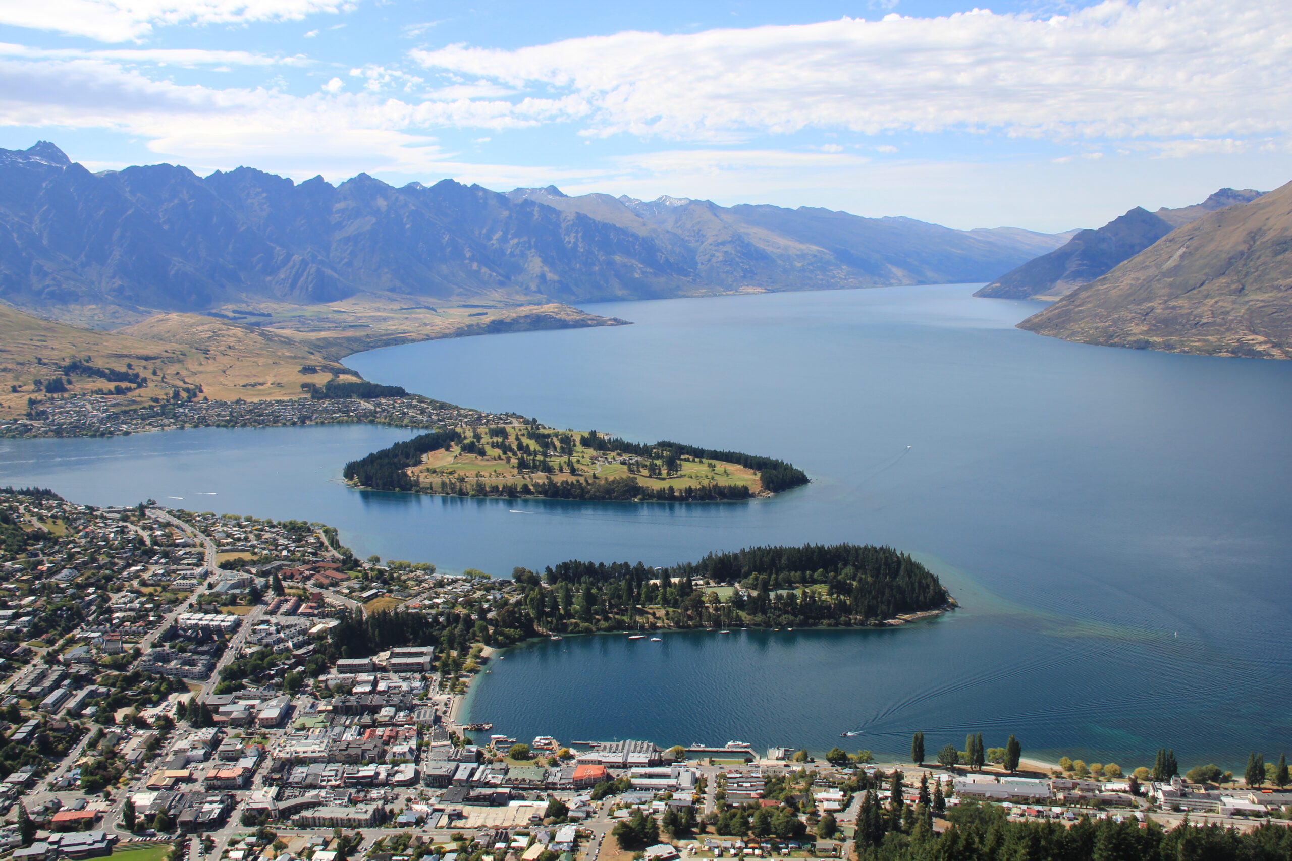 クイーンズタウンはワカティプ湖(Lake Wakatipu)という大きな湖に面しており、その湖の周りは山に囲まれています。